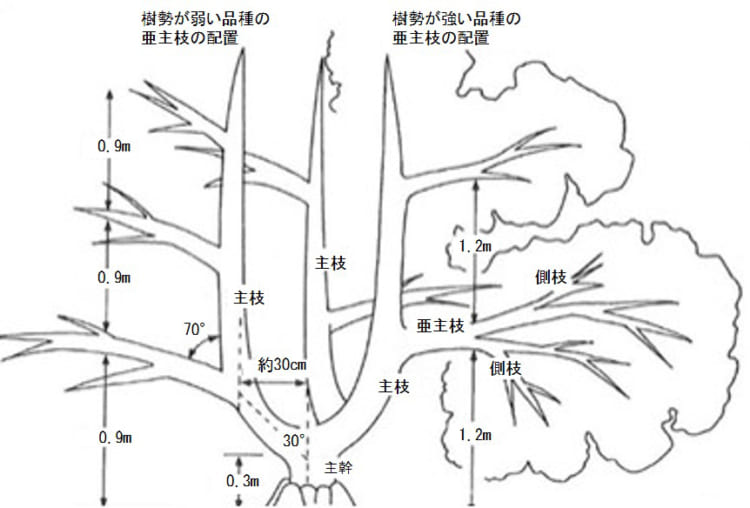 また、日焼け果や裂果の発生が多い園では、樹勢を落ち着かせるため、せん定時期を遅らせ(着蕾(ちゃくらい)確認後)、軽めのせん定としましょう。