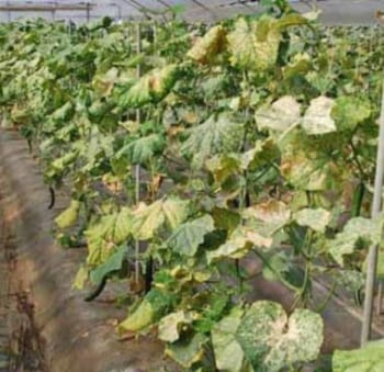 夏秋キュウリは、コナジラミ類やアザミウマ類などの微小害虫が多発する時期と栽培が重なるため、これらが媒介する病原ウイルスによる病害(ウイルス病)の発生が問題となっています。