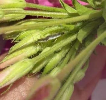 一般的に天敵に比べて害虫の増殖は早いため、ハウス内で害虫が増加傾向になった場合は、農薬による防除を実施します。ただし、天敵に対して影響の大きい農薬を使用すると、天敵の密度が大きく低下してしまうため、天敵に対して影響の少ない農薬を選択して使用します。また、農薬を散布する際は、ハウス内に定植したクレオメに薬剤が飛散しないように注意します。