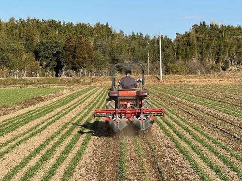 播種量は適期播種で5.5~6.5㎏/10a程度とし、遅播(ま)きは1.0㎏/10a程度増量して生育量を調整します。播種深度の目安は3㎝ですが、浅過ぎると播種後の乾燥で出芽率の低下や除草剤による薬害を招き、深過ぎると出芽が遅れることでその後の生育が不良になります。