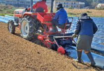 令和8年産については、管内の2法人が計50aで栽培に取り組んでおり、2月2日から植付作業を行いました。植付以降、気温が高く推移したことから、例年より早く出芽が確認され、順調な栽培スタートとなりました。前作の課題であった排水対策については、高畝や明渠※を作ることで改善を図っています。