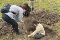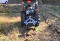 まず、新植予定園の土壌断面調査を実施し、地下水位や硬盤の位置、土質について調査を行いました。そして、硬盤を破壊し排水性を良くするために、(株)クボタにご協力頂き、カットブレーカーによる硬盤破壊をおこないました。今後、排水性向上のために額ぶち明渠を設置するとともに、土壌の物理性改善のためにもみ殻を投入し、植え付けする予定です。