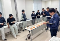 会議では、当課から今年度の気温の推移や設置した展示ほの実績について説明後、次年度の設置計画などについて協議を行いました。その後、トマト高温耐性品種6種の食味試験や展示ほ2か所(トマトの高温耐性品種比較・LED誘引駆除機によるコナジラミ防除対策)の試験状況について、現地確認を行いました。