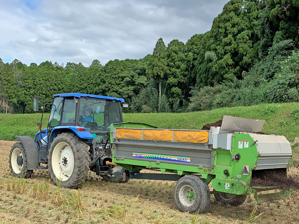 法人が所有する堆肥舎では、近隣の畜産農家から受け取った牛ふんや豚ぷんに米ぬか等を混合し、半年かけて何度も切り返しながら完熟させています。この特製完熟堆肥は、作物の成長に必要な栄養源となるだけでなく、長年にわたり継続して施用することで土壌中の微生物を活性化し、団粒構造を強化して、排水性と保水性を両立させる土づくりに貢献します。さらに、無農薬栽培を30年以上継続していることから微生物相が安定し、作物の生育に適した環境が維持されています。