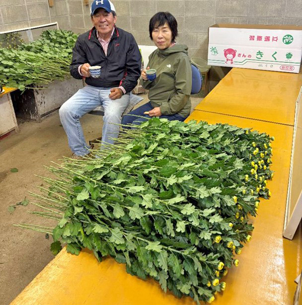 お話を聞く中で、ご夫婦のお互いを思いやる気持ちが、花に現れていると感じ、異常気象など難しい局面の中でも凛とした菊を作り続けていかれるのだと思いました。